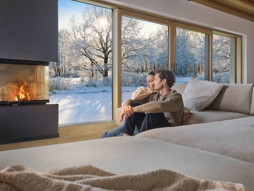 Dank hochdämmender Verbundmaterialien (z.B. Thermoschaum-Kerne) bleibt die Wärme im Wohnraum.